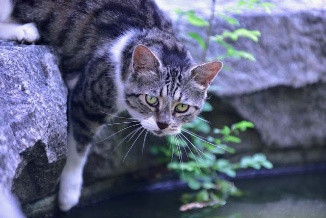 地面に這いつくばって撮影していると、どこかで「にゃー」と鳴く声が・・